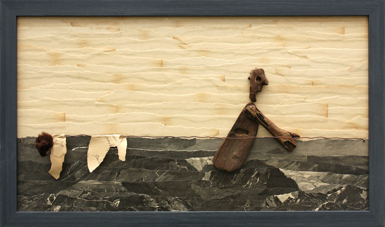 Treibmensch . altes Papier/Treibholz/Draht . 26 x 44 cm . 2011