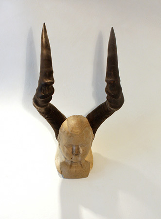 Totem der Künstlerin . Gehörn Kudu Antilope/alter Puppenkopf . ca. 24 x 42 cm . 2011