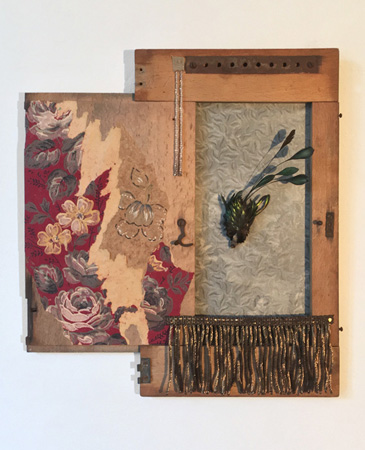 24 x 27 cm . Holzdeckel/Tapete/Schädel v. Paradiesvogel